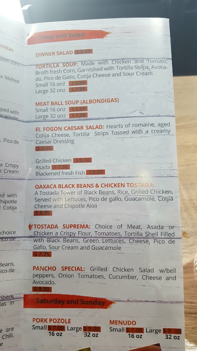 Weekends bring special delights like Pork Pozole and Menudo, rich in tradition and flavor, perfect for a cozy gathering. Don't forget to indulge your sweet tooth with their Flan Tradicional and crispy Churros.